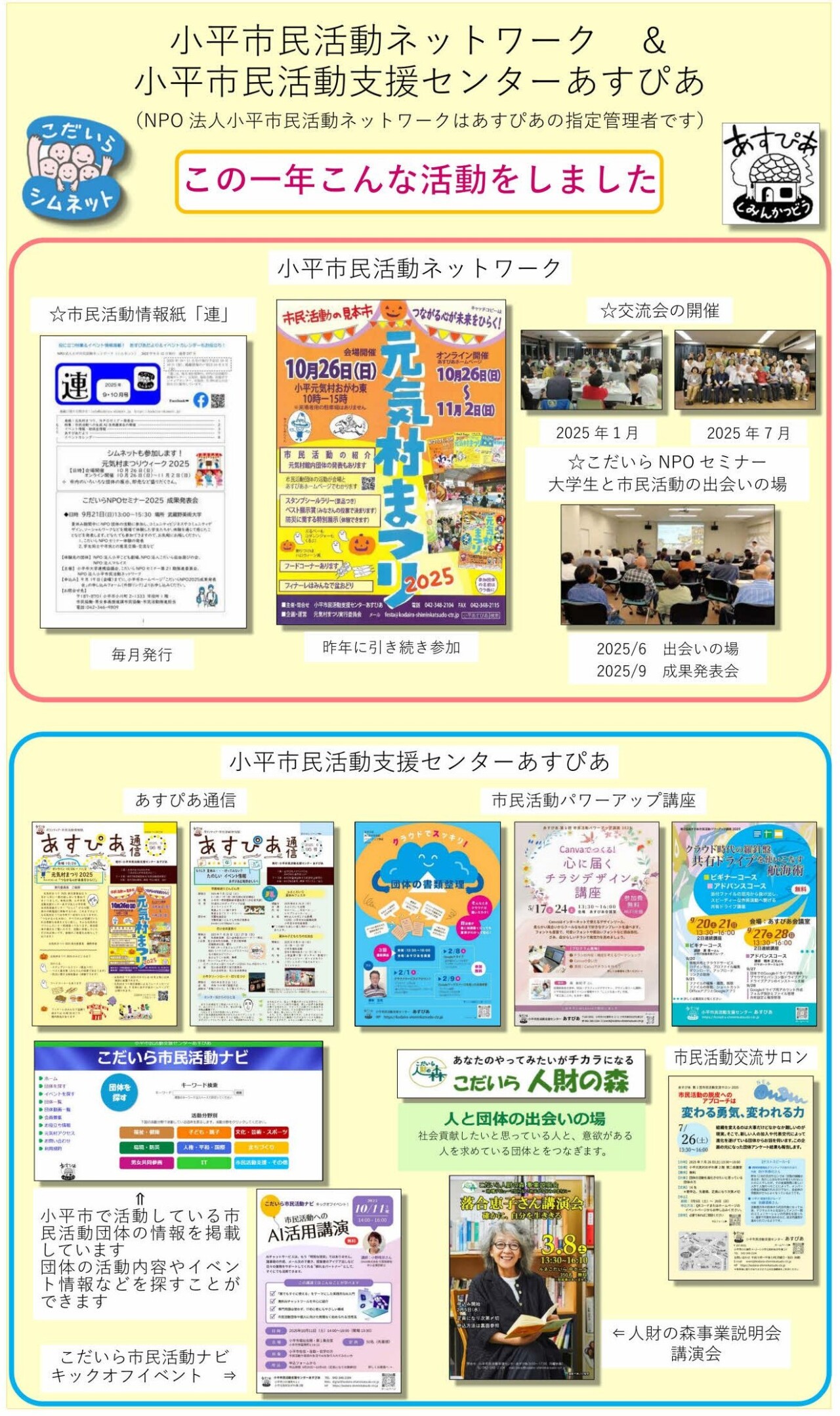2025年度の小平市民活動ネットワークの活動を下図に紹介します。