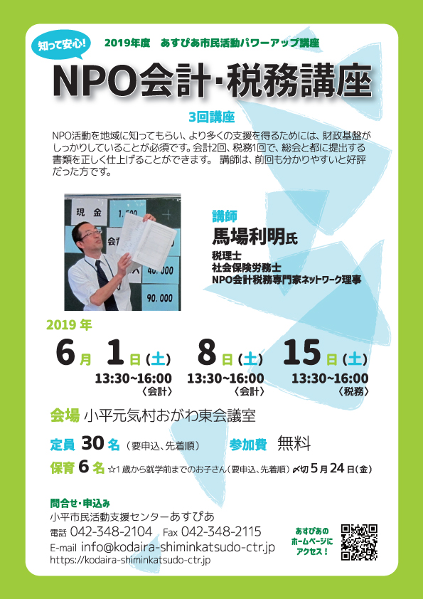 詳細→ https://kodaira-shiminkatsudo-ctr.jp/archives/cats/npofes