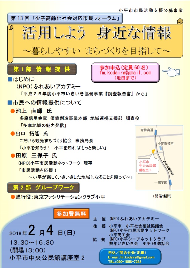 NPO法人ふれあいアカデミー http://www.kodaira-net.jp/kd8000050/