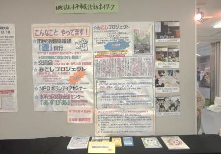 小平市民活動ネットワークの会員団体の活動を紹介するパネル、リーフレット、チラシ等のブース展示